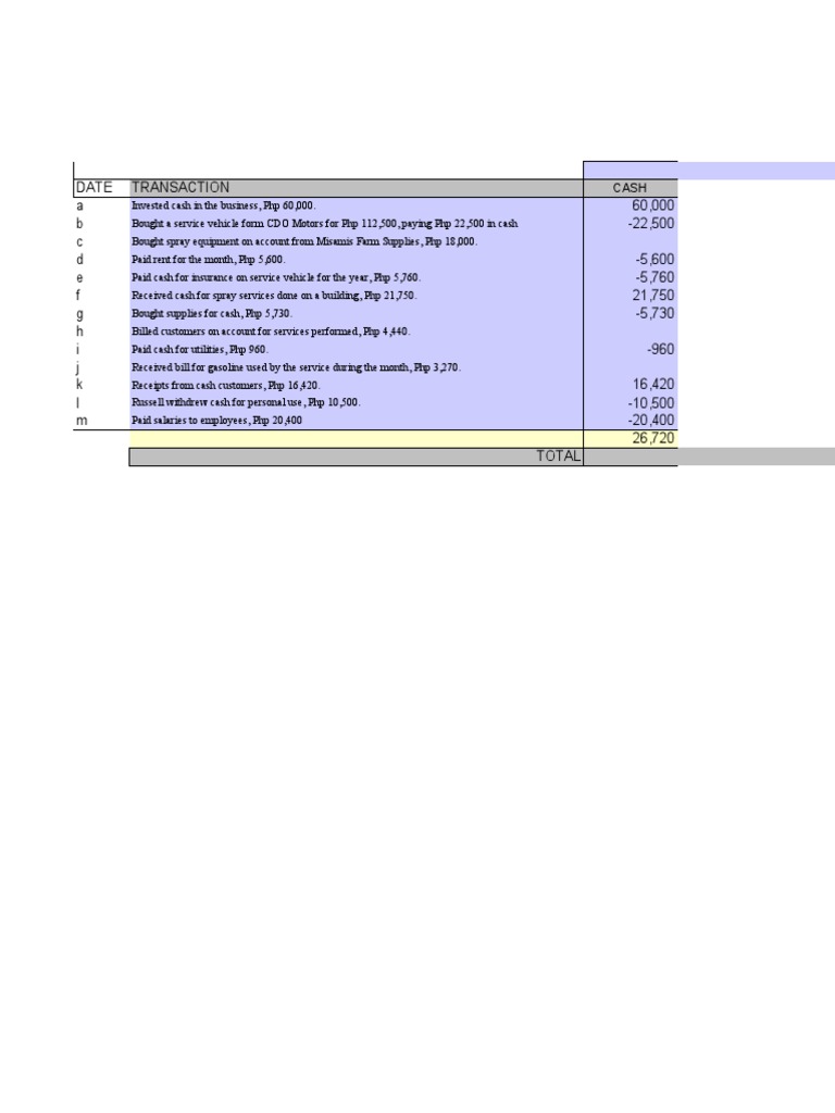 e Paid cash for insurance on service vehicle for the year, Php 5,760. -5,760