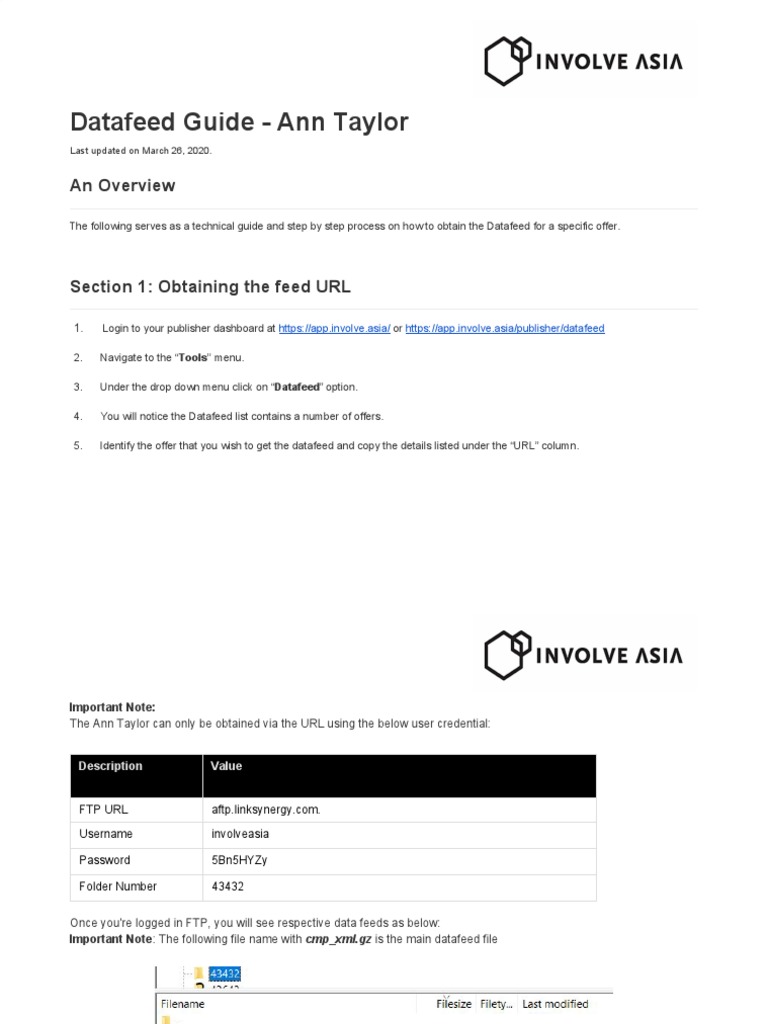 The following serves as a technical guide and step by step process on how to obtain the Datafeed for a specific offer.