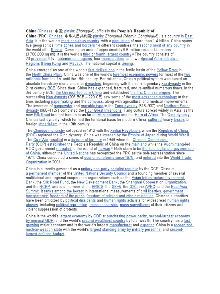 China (PRC; Chinese: 中华人民共和国; pinyin: Zhōnghuá Rénmín Gònghéguó), is a country in East