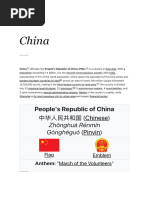 (Chinese: 中国; pinyin: Zhōngguó), officially the People's Republic of