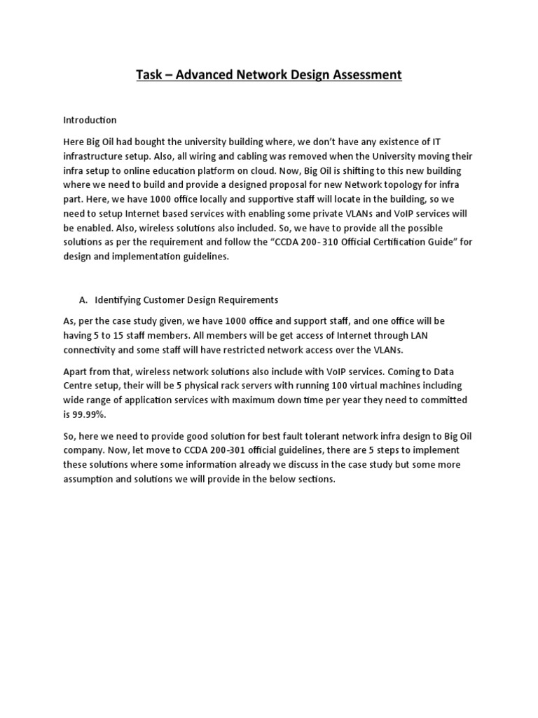 solutions as per the requirement and follow the “CCDA 200- 310 Official Certification Guide” for