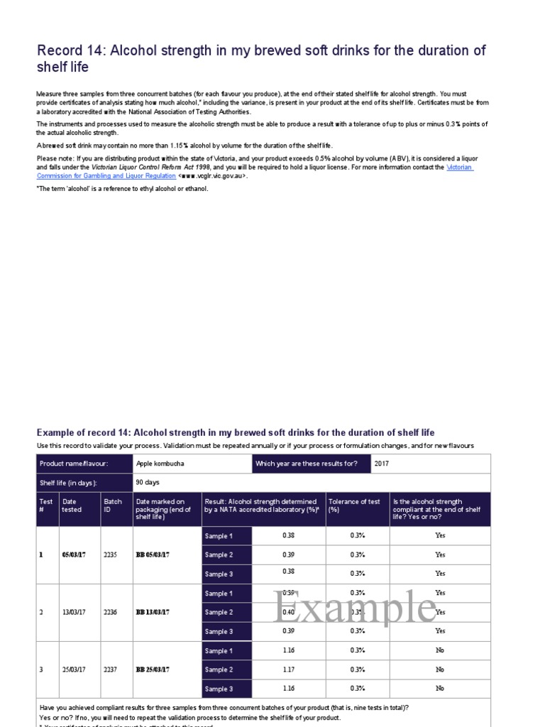 Example of record 14: Alcohol strength in my brewed soft drinks for the duration of shelf life