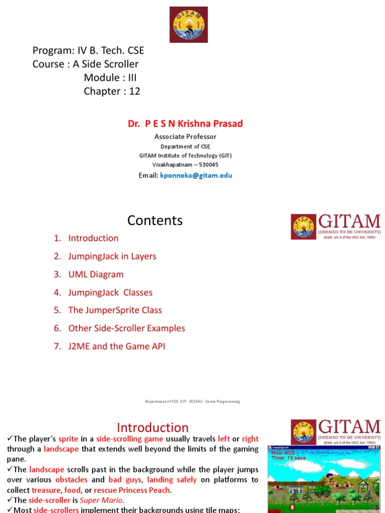 Jack walks or jumps over the bricks. Department of CSE, GIT - ECS442 - Game Programming
