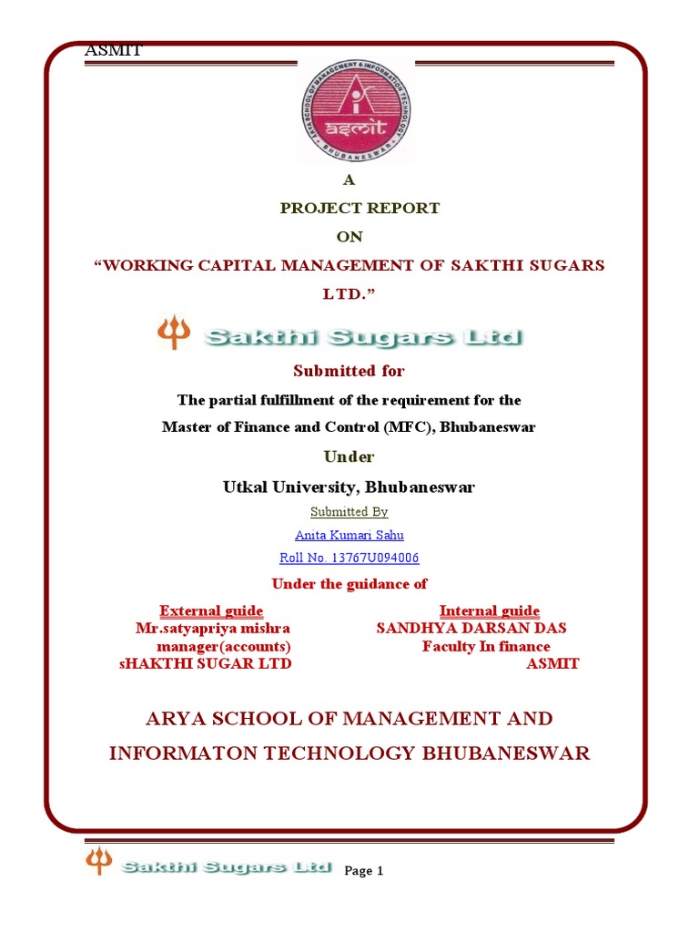 dissertation report on “A Analysis On Working Capital