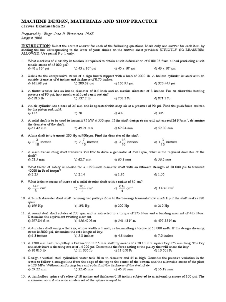 MACHINE DESIGN, MATERIALS AND SHOP PRACTICE