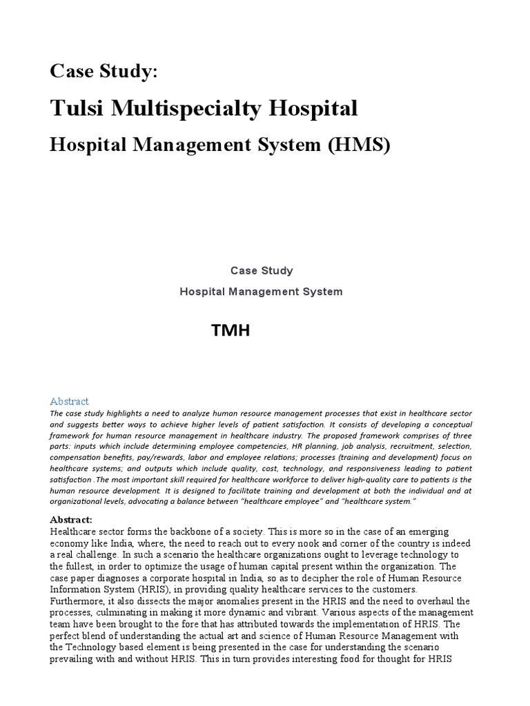 case paper diagnoses a corporate hospital in India, so as to decipher the role of Human Resource