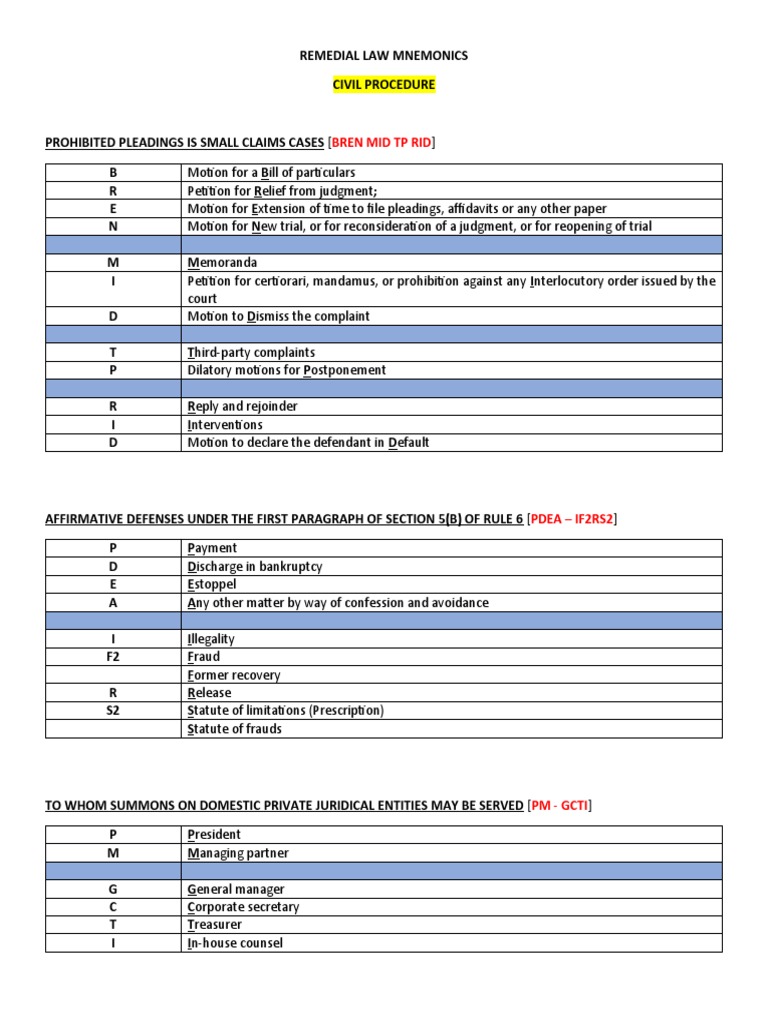 Remedial Law Mnemonics