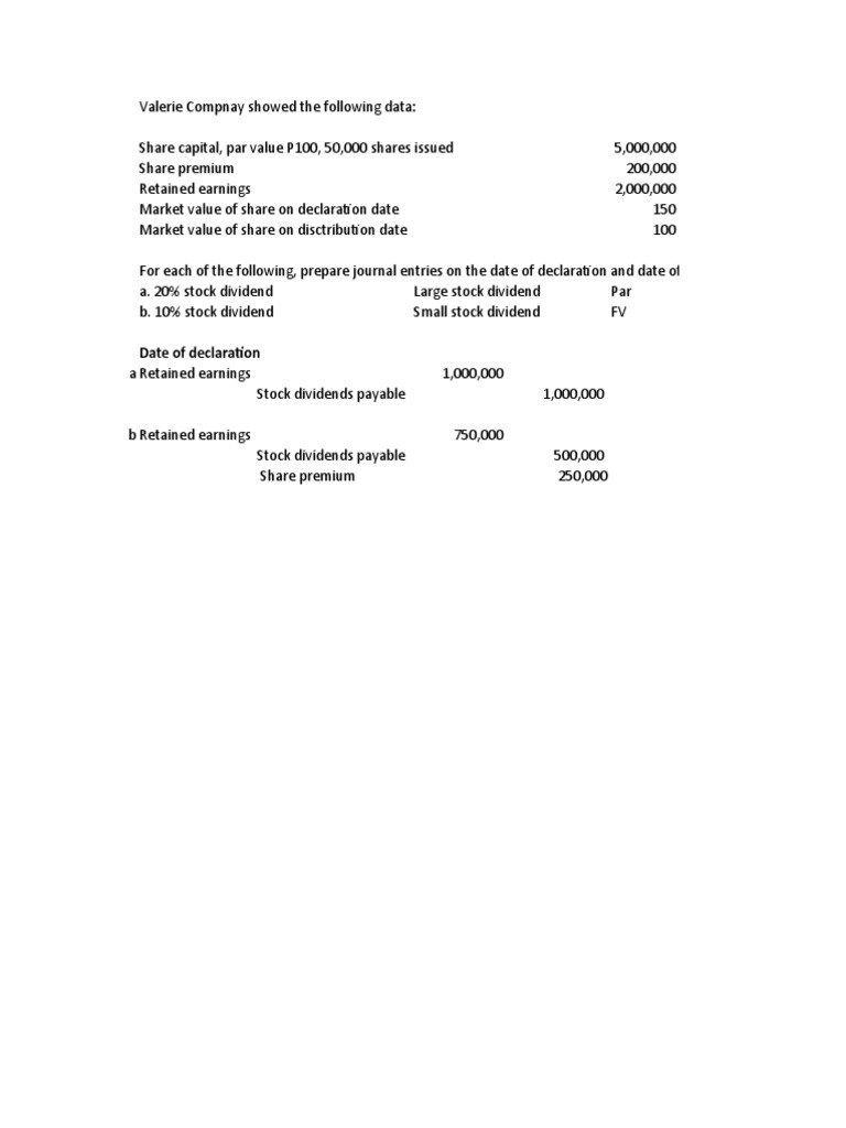 and outstanding and the market value was P20 per share on declaration date and P25 on distribution date. The sha