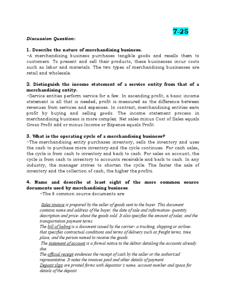 1. Describe the nature of merchandising business.