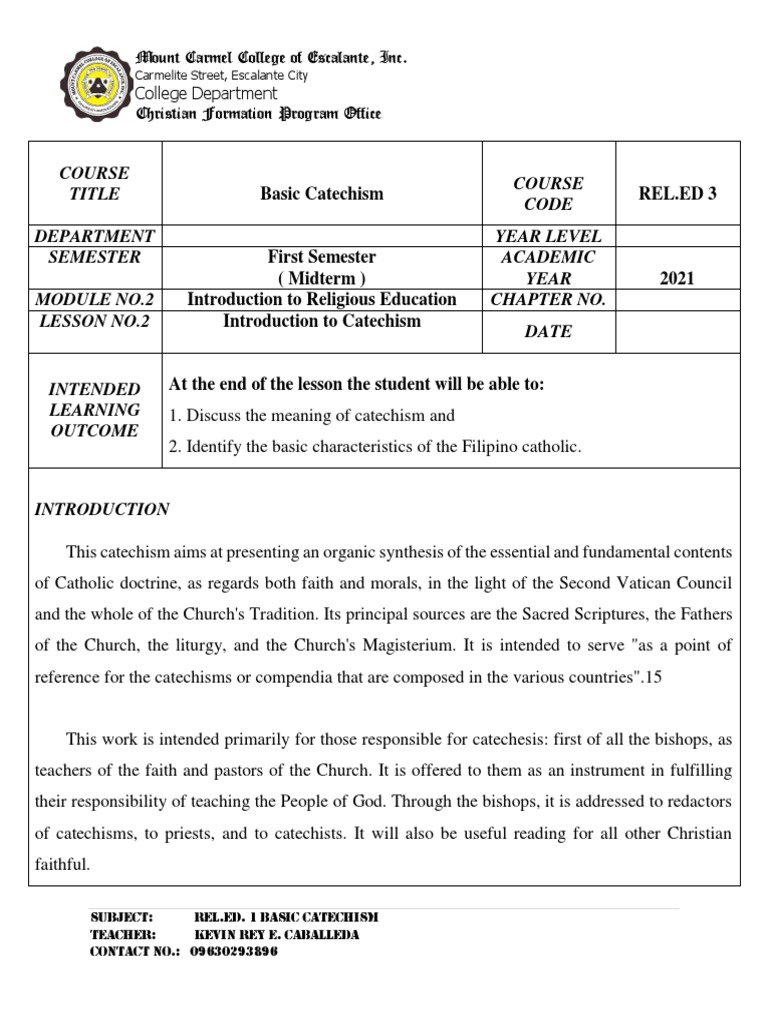 LESSON NO.2 Introduction to Catechism