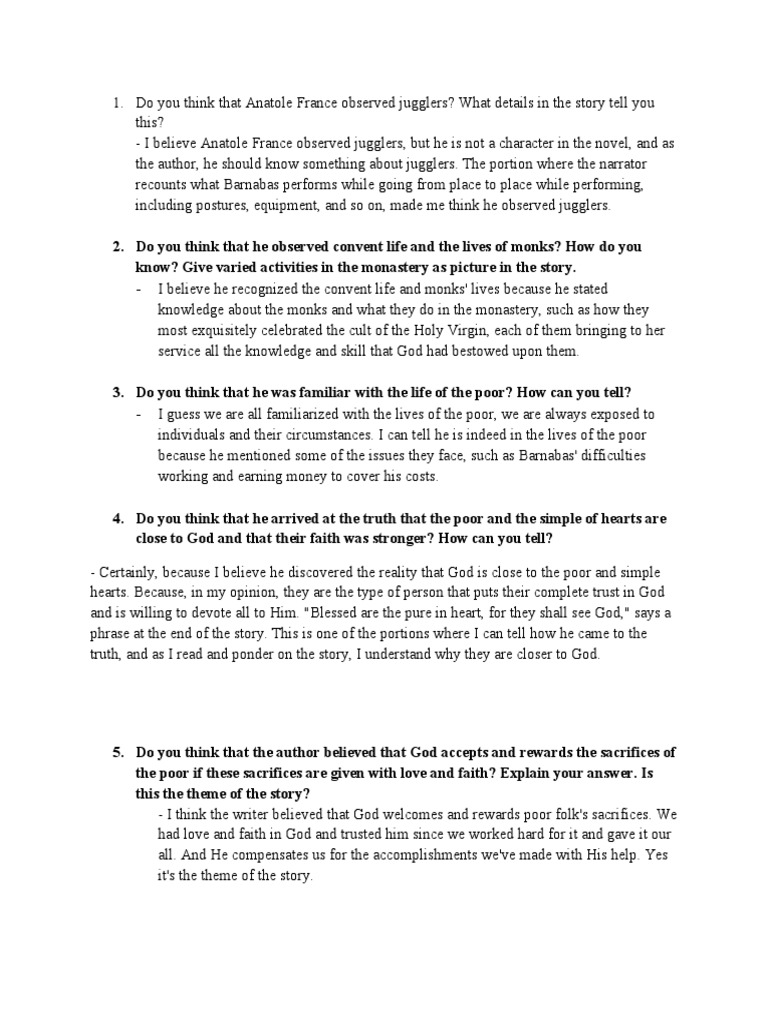 5. Do you think that the author believed that God accepts and rewards the sacrifices of