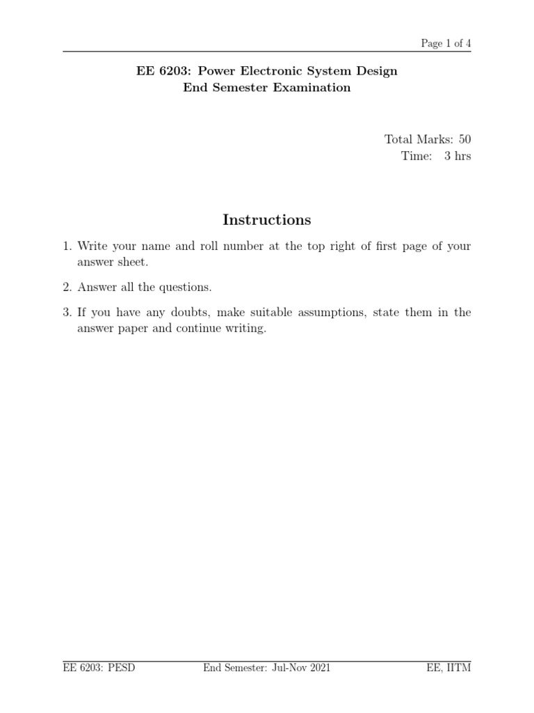 EE 6203: PESD End Semester: Jul-Nov 2021 EE, IITM