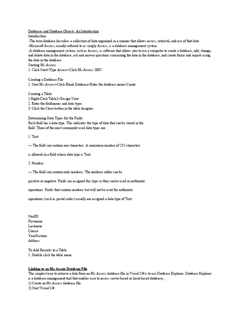 Databases and Database Objects: An Introduction