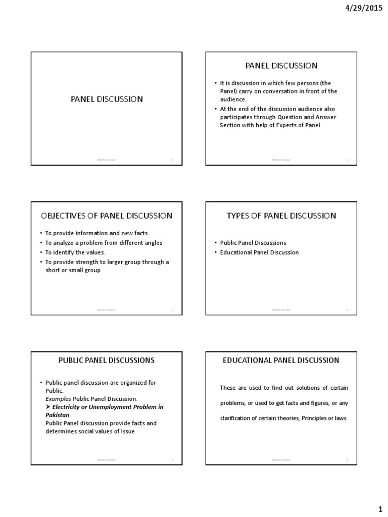 OBJECTIVES OF PANEL DISCUSSION TYPES OF PANEL DISCUSSION
