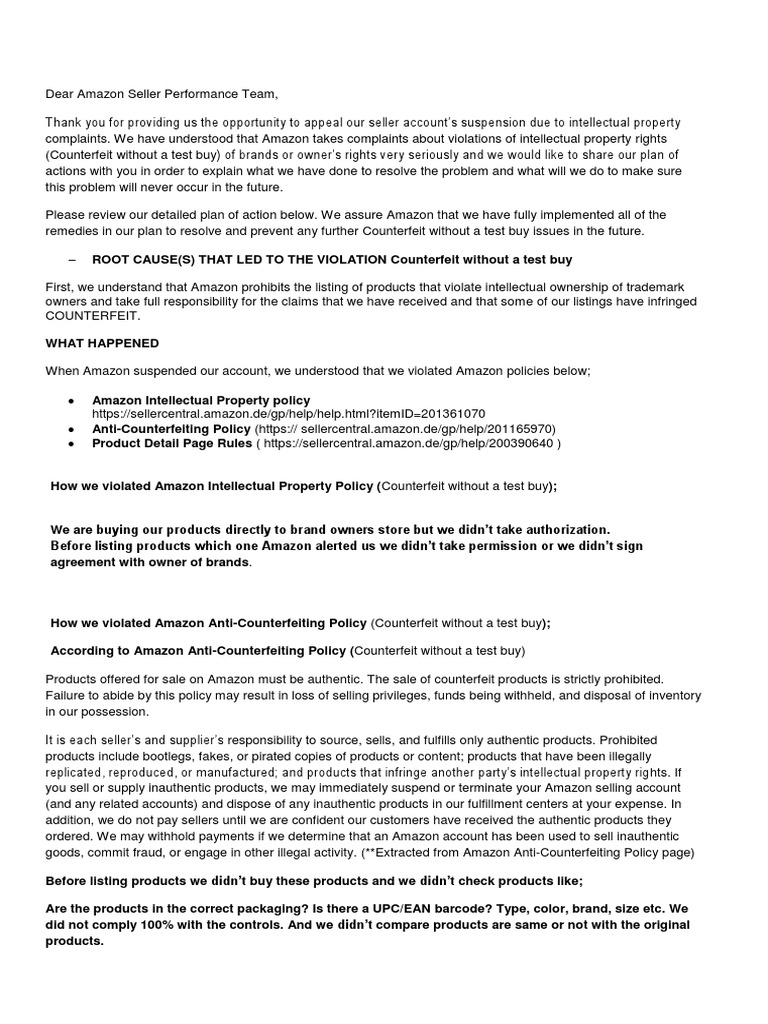 Please review our detailed plan of action below. We assure Amazon that we have fully implemented all of the