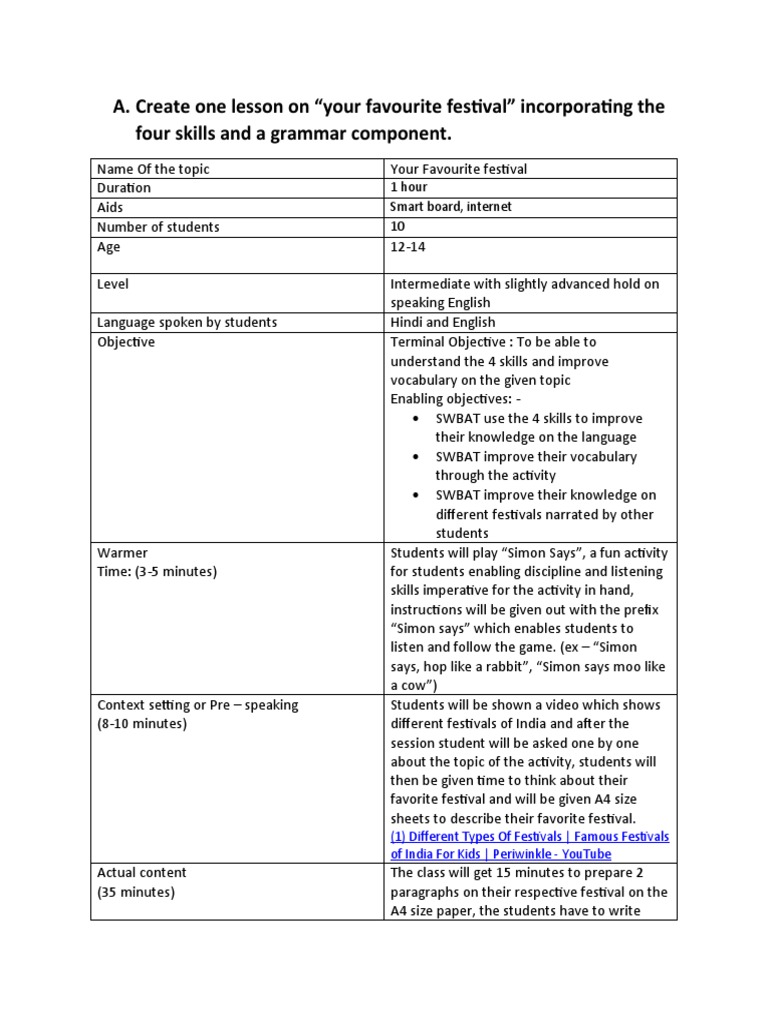 Home Study Plan (Homework) Students will be instructed to write an essay