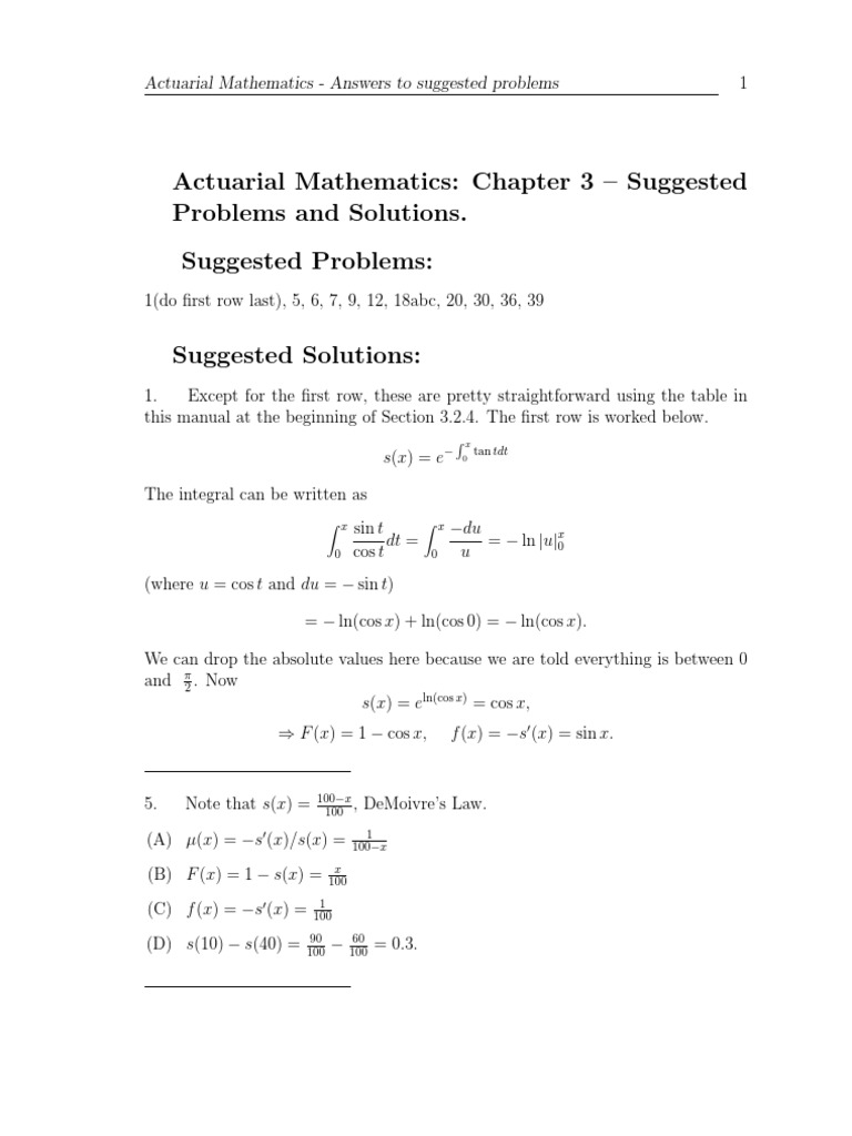 1 = t p x v µx (t) dt = e−0.025t e−0.05t (0.005) dt