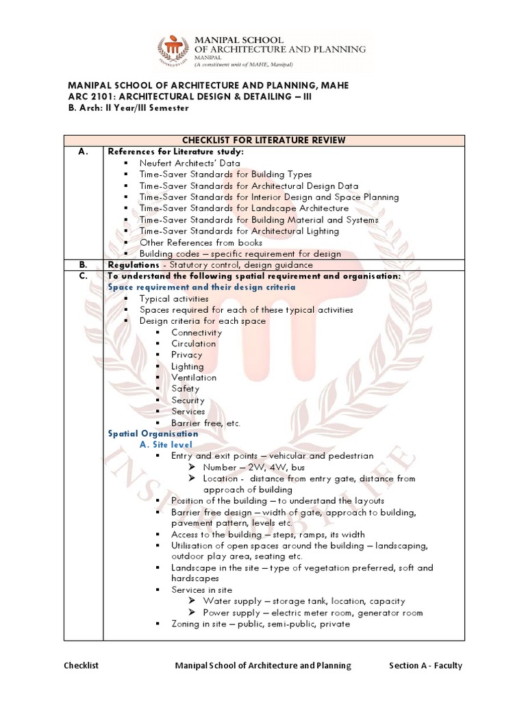 Checklist Manipal School of Architecture and Planning Section A - Faculty