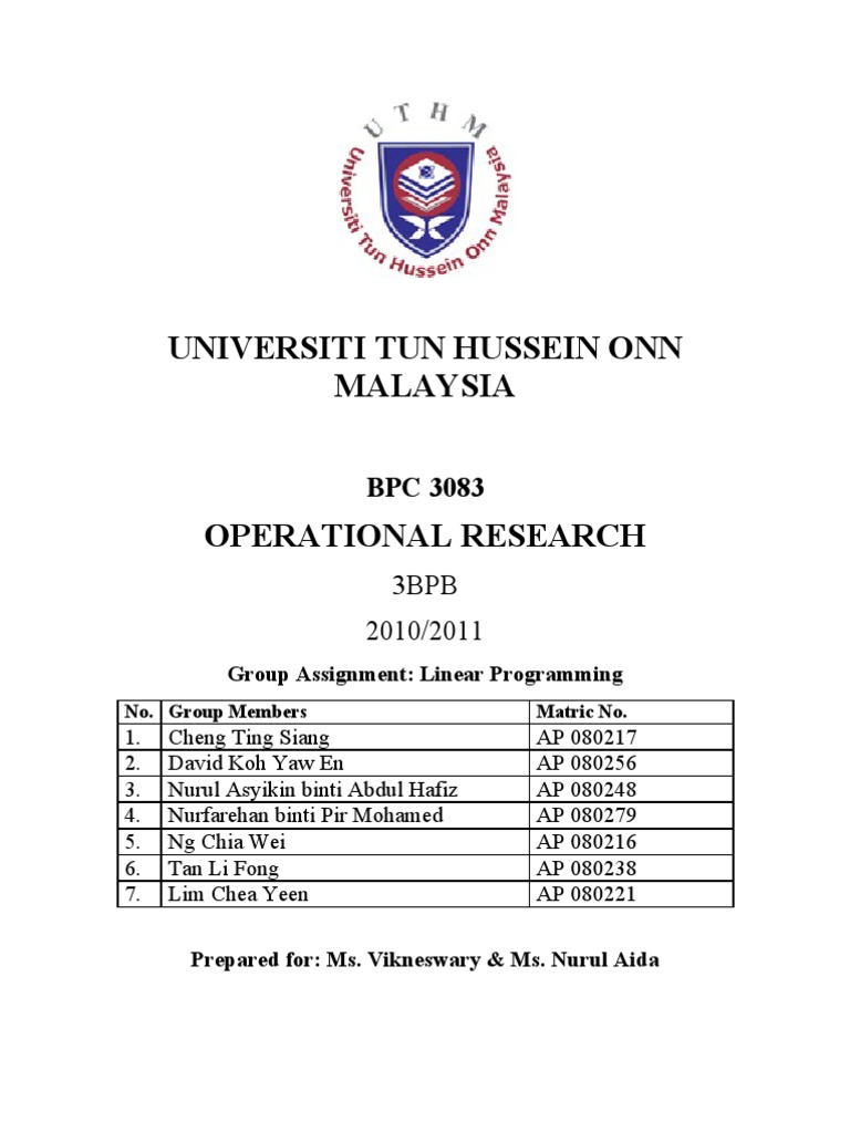 Group Assignment: Linear Programming