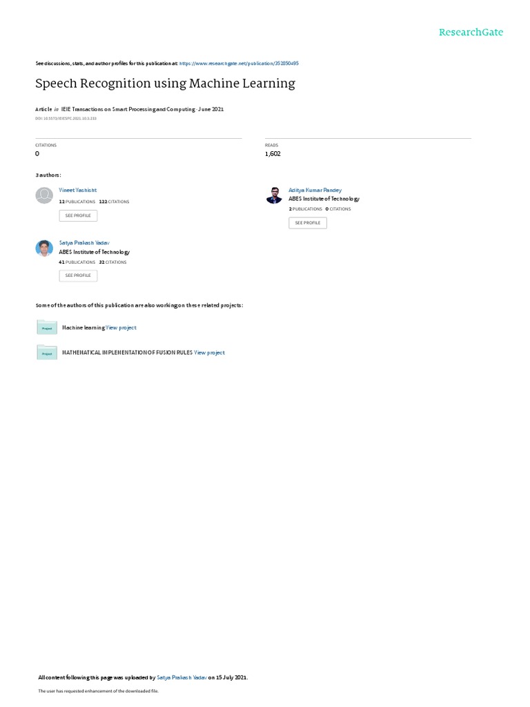 238 Vashisht et al.: Speech Recognition using Machine Learning