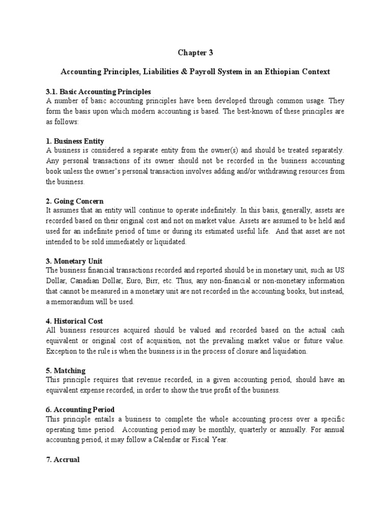 Accounting Principles, Liabilities & Payroll System in an Ethiopian Context