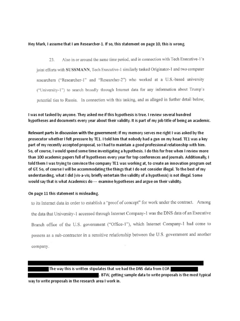 14, Researcher 1 could appear to be a co-conspirator/cooperator of Tech Executive 1 in writing this