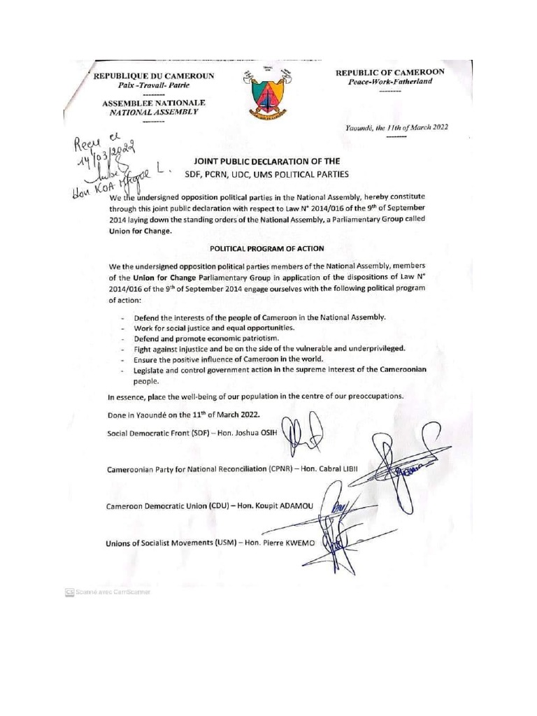 ‘Cameroonian Party for National Reconeiliation (CNA) —Hon. Cabral LIB!