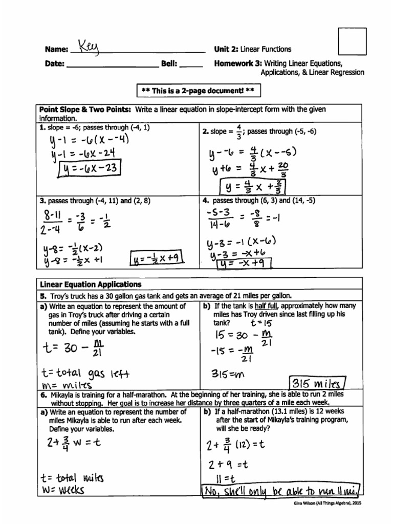 Homework 3: Writing Linear Equations,