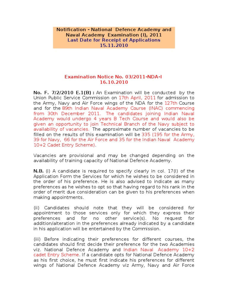 NDA and Naval Academy Exam Notification