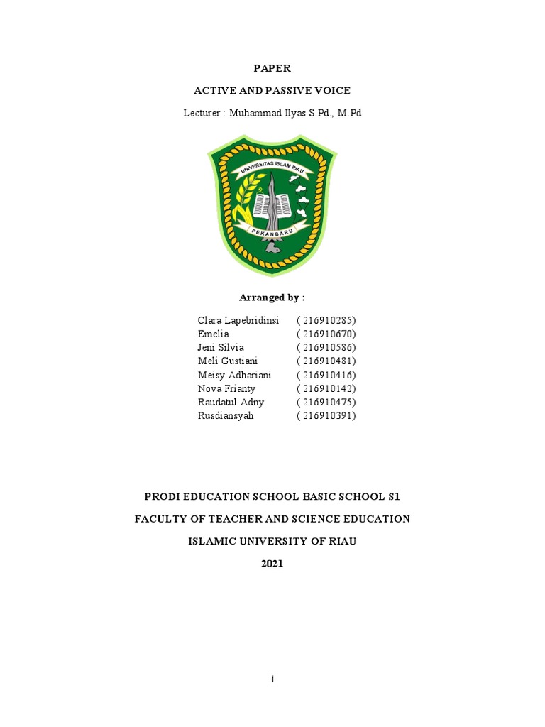 so that I can complete paper Active and passive voice. Thanks to Muhammad Ilyas S.Pd.,