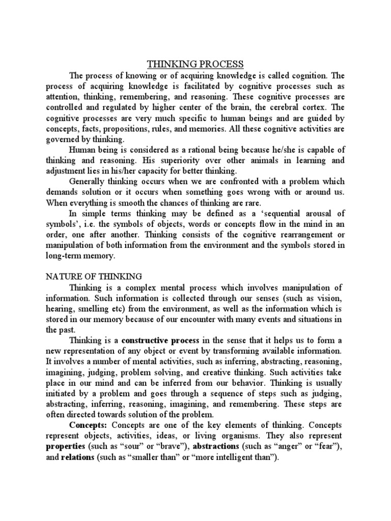 Thinking is a complex mental process which involves manipulation of