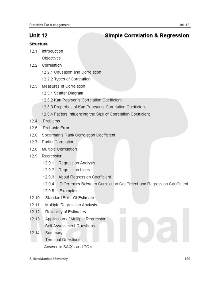Unit 12 Simple Correlation & Regression