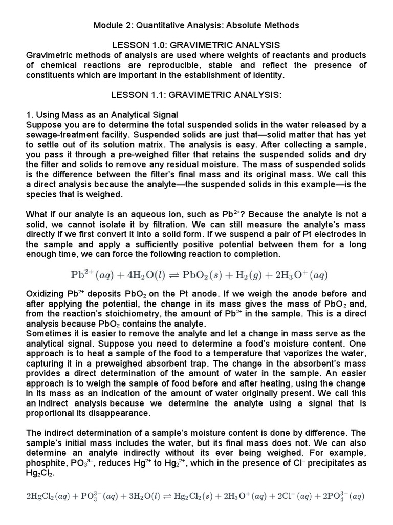 LESSON 1.0: GRAVIMETRIC ANALYSIS