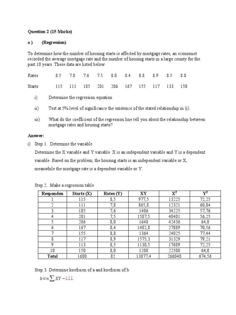 variable. Based on the problem, the housing starts is an independent variable or X,