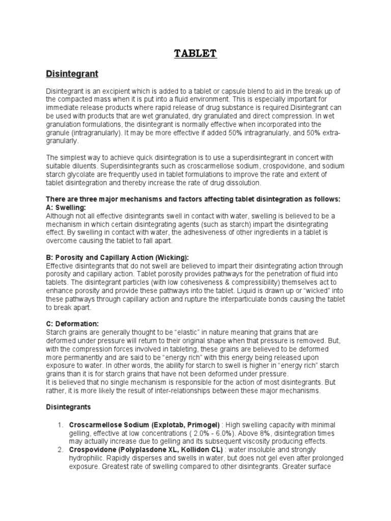 to become appreciated, it is now accepted that the role of the disintegrant is extremely
