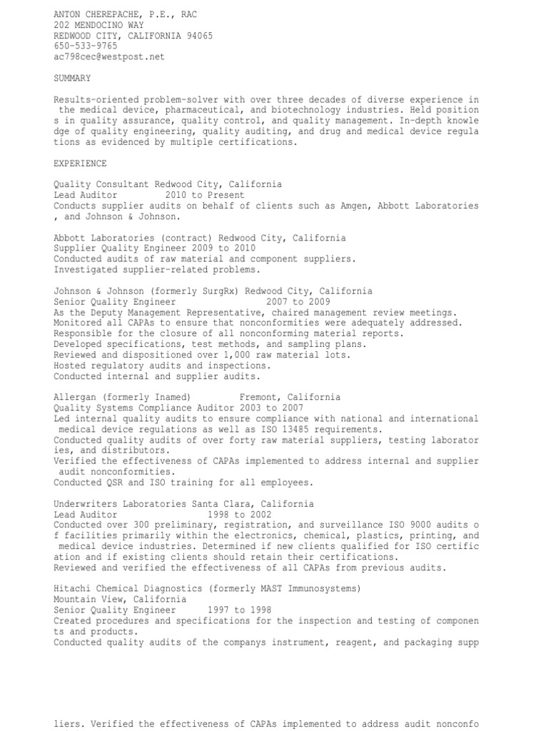 y Engineer, Certified Auditor, Certified Biomedical Auditor, and Certified Pharm