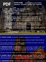 - The earliest records of pre-colonial architecture in the Philippines are rock shelters and