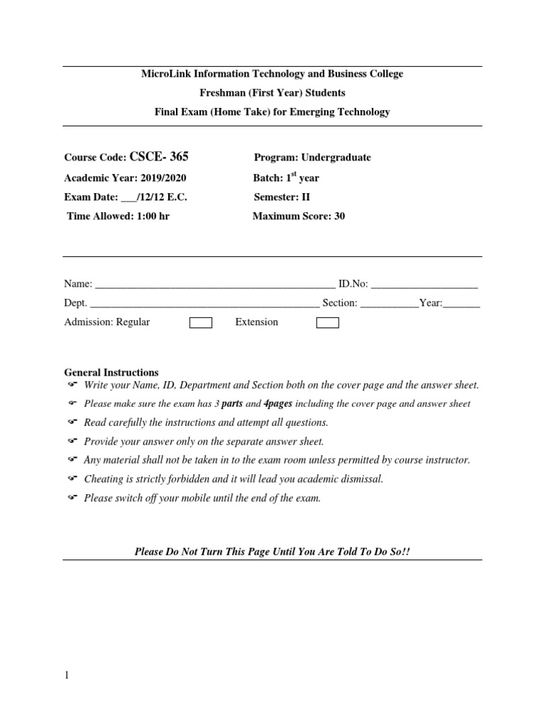 Final Exam for Emerging Technology