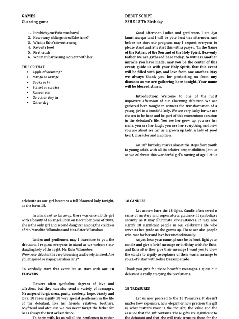 debutant, I request everyone to stand as we welcome our candle and give a brief message or birthday wish for Eshe,