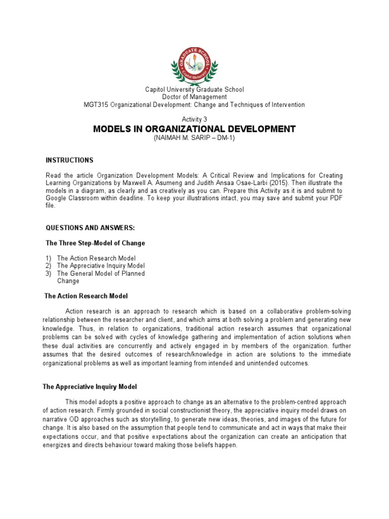 MODELS IN ORGANIZATIONAL DEVELOPMENT
