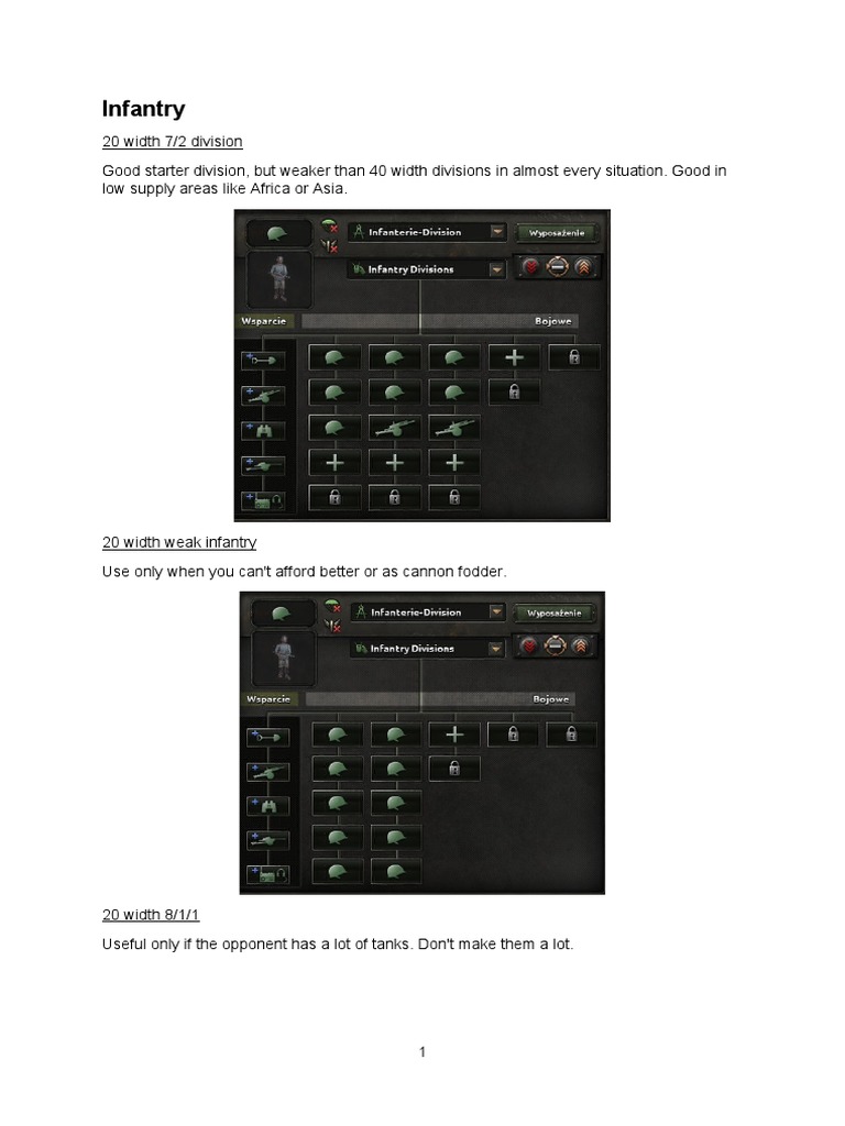 The cheapest infantry division 40 width. I recommend using it only in countries that have an