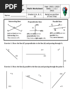 Based on the picture above, mention lines that are parallel, perpendicular, and intersecting.