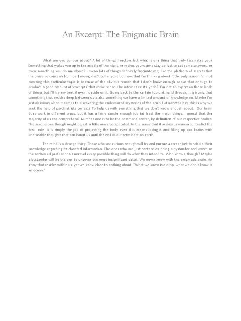 just oblivious when it comes to discovering the endevoured mysteries of the brain but nonetheless, this is why we