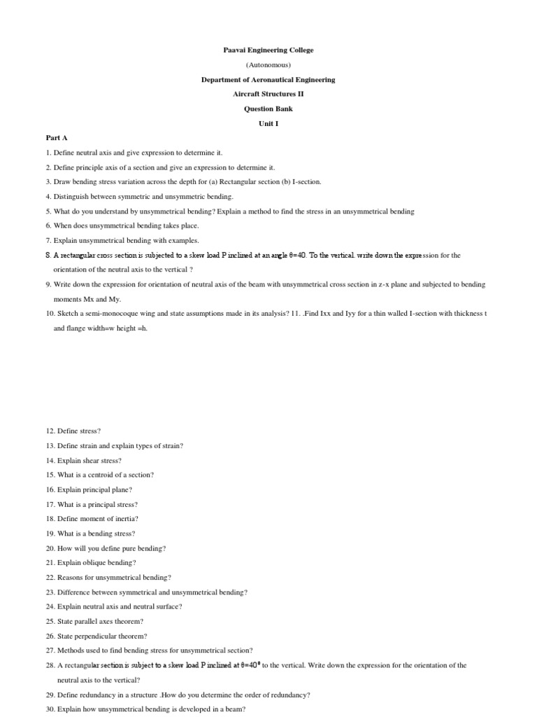 31. Writ e down the expression for orientation of neutral axis of beam with unsymmetrical cross section in z-x plane and subjected to bending