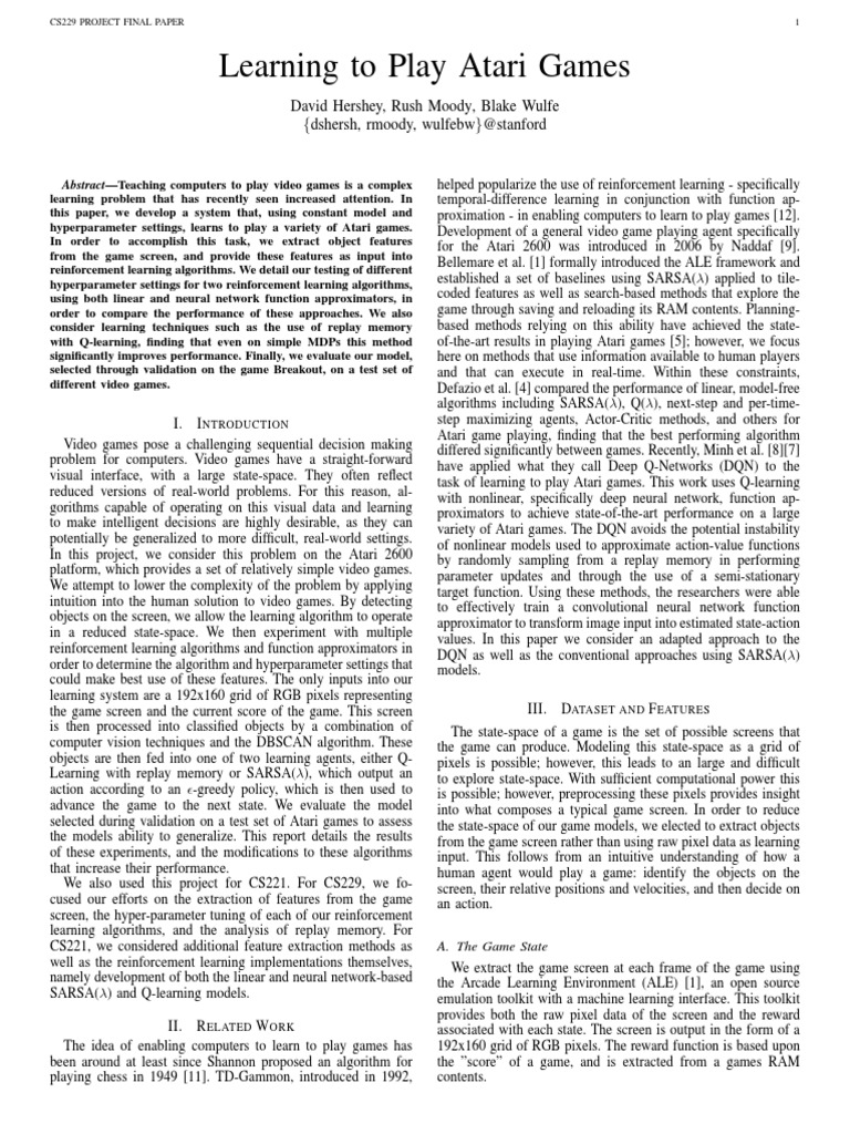 Learning to Play Atari Games