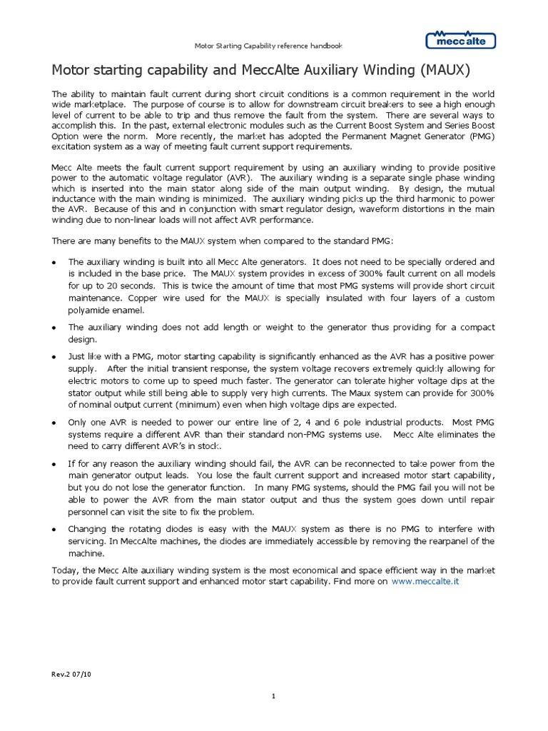 Motor starting capability and MeccAlte Auxiliary Winding (MAUX)