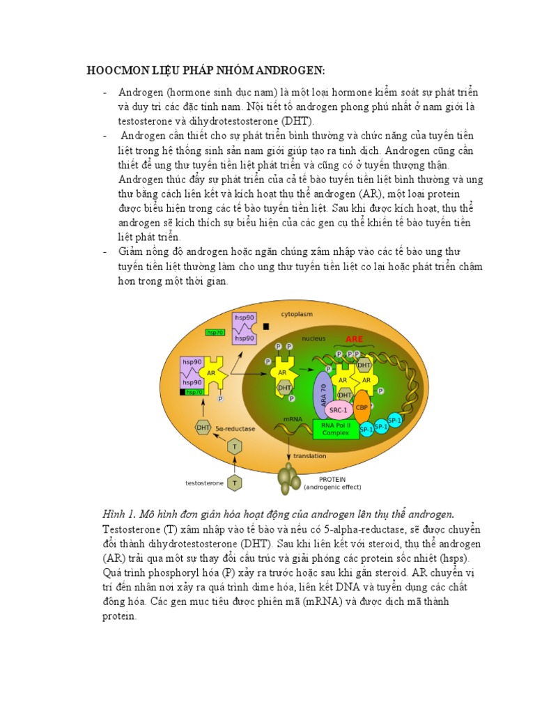 Hình 1. Mô hình đơn giản hóa hoạt động của androgen lên thụ thể androgen.