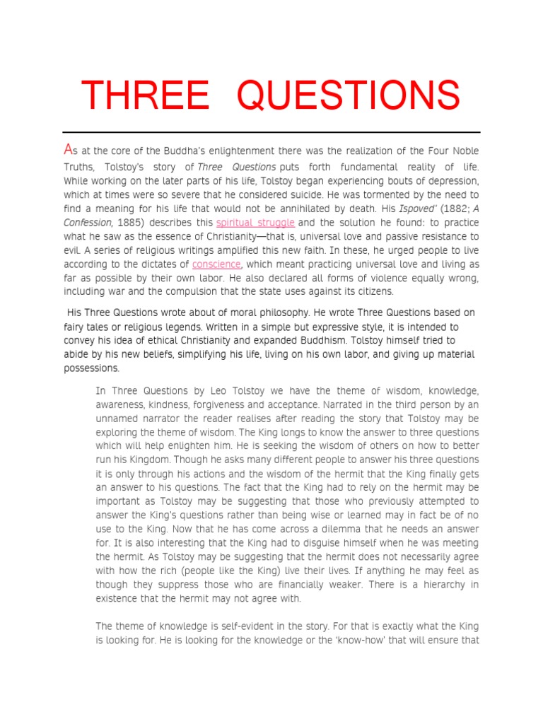 Truths, Tolstoy’s story of Three Questions puts forth fundamental reality of life.