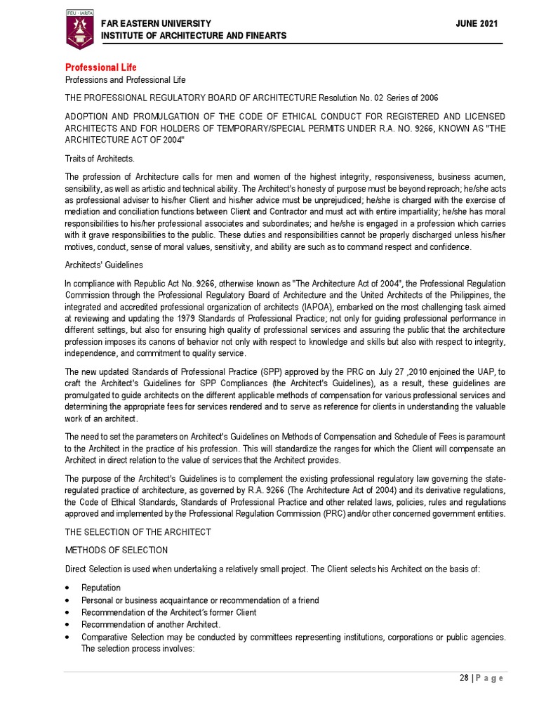 ln compliance with Republic Act No. 9266, otherwise known as "The Architecture Act of 2004", the Professional Regulation