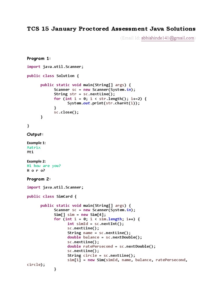 TCS 15 January Proctored Assessment Java Solutions